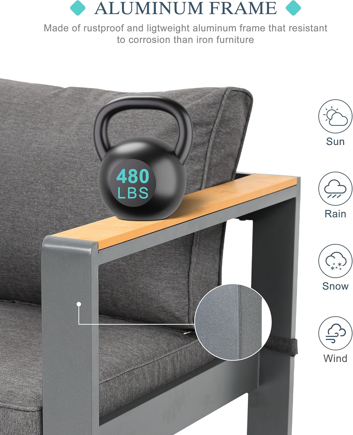 - Premium Comfort & Easy Care: Generously padded with 4" thick, high-density foam cushions and deep seating (up to 25"), this aluminum outdoor couch deliver exceptional comfort. Outdoor-grade fabrics resist water, fading, and stains, while zippered, removable covers and fasten tape ensure effortless cleaning and secure cushion placement