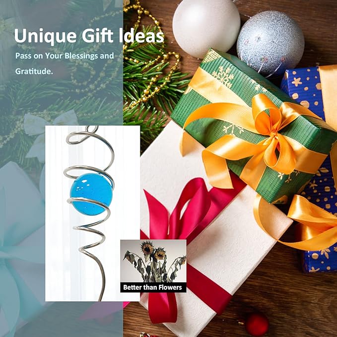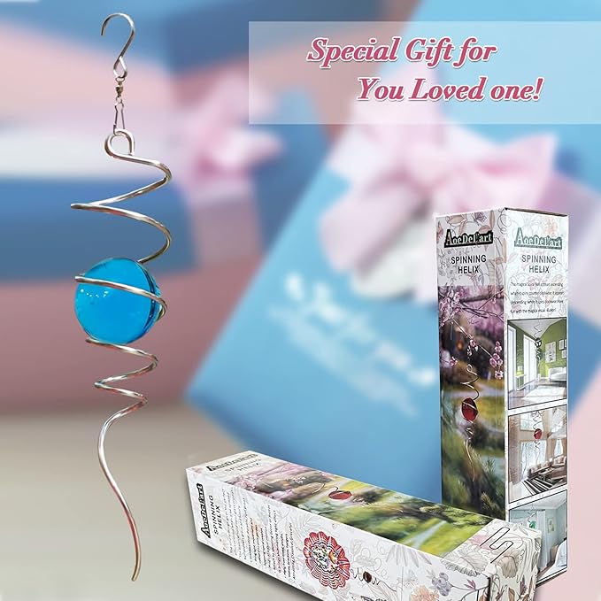 - 【Unique Spiral Design】The gazing ball spiral tail is an unique hanging ornament ,Also it can help to stabilize 3D wind spinners or yard decor from swing when it rotate.When the spiral tail rotates to the left, the glass ball seems to move upwards,when the spiral tail rotates to the right, the glass ball seems to moves downward,the glass ball seems to like floating and dancing in air, presenting a magical optical illusion!