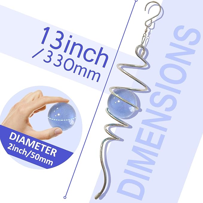 - 【DURABLE AND ATTRACTIVE】:The gazing ball spiral is an unique hanging ornament ,Also it can help to stabilize 3D wind spinners or yard decor from swing when it rotate. The glass ball seems to move up and down like floating and dancing in air while spiral tail rotating, presents the magical visual illusion, can help calm and relax the mind, reduce anxiety and allow to better focus your mental attention.