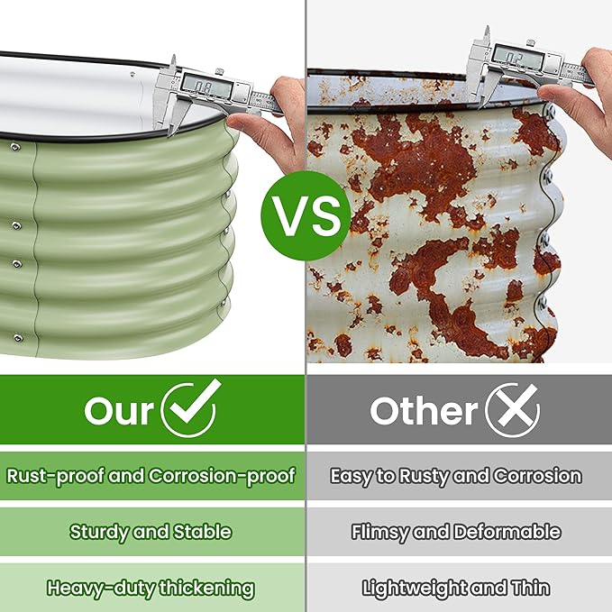 - Long-Lasting Quality:The garden beds are made of zinc aluminum-magnesium steel for durability. This advanced material is more resistant to corrosion and rust than traditional galvanized materials. Lasts 2-6 times longer than traditional galvanized raised beds, far longer than wood raised garden bed.