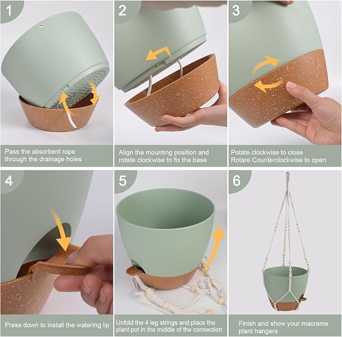 - Self Watering Pots - The self watering hanging planter features multiple drainage holes to help you avoid over-watering and release excess water. Separate the potting soil from the water surface, enter the water through cotton rope perforations to keep the soil moist and plants healthy growth.