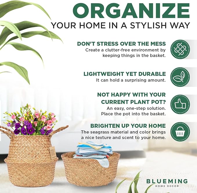 - πΏ πππ’-ππ₯πππ‘πππ¬ & πππ‘πππ₯πππ§ππ: Made from natural seagrass to beautifully complement olive, monstera, and snake plants.