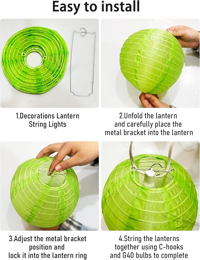 - 🏮Easy assembly: Simple DIY assembly is required, plastic hook on bulb to the lantern and carefully unfold the lantern, very convenient and versatile lighting decorative lantern string lights for patios, decks, weddings, pubs, bookstores, pergolas, etc