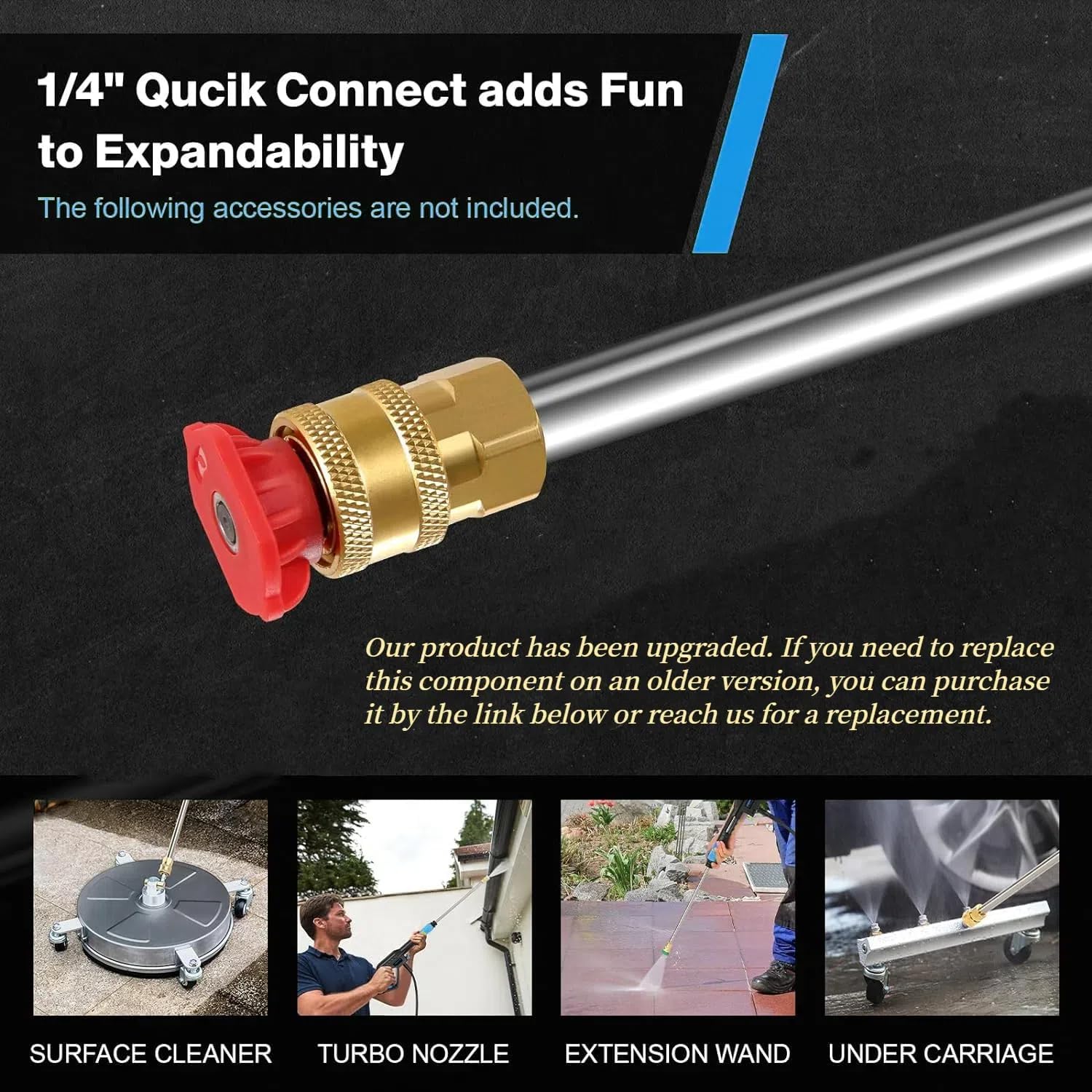 - QUICK JOB: This professional pressure cleaner features 4 nozzles and removable detergent tank, with 4 nozzles to provide low-to-high pressure for washing a range of surfaces. No need to frequently replace nozzles for cleaning. The soap tank can be filled with your preferred detergent to boost cleaning power, enabling you to complete your cleaning tasks in minutes