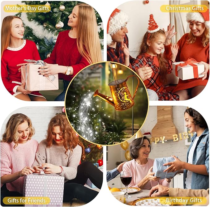 - Perfect Decoration: Transform your garden, yard, or outdoor space into a magical nighttime retreat with our solar watering can lights. Emitting a warm golden glow, these lights resemble a cascade of shimmering stars pouring from the can, casting enchanting patterns on the ground. Perfect for creating a romantic ambiance, this garden light adds a touch of wonder to your patio, lawn, or yard, making every evening unforgettable
