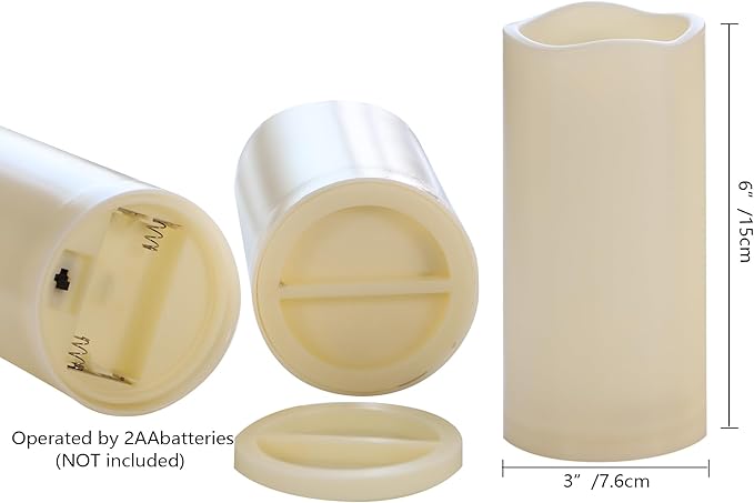 - Easy to use with timer. There is a built-in daily cycle timer inside each battery LED candle. Once the pillar candle is turned on, the timer starts to work. The LED flameless candle stays on for 6 hours and turns off automatically for the next 18 hour. This 6-hour on, 18-hour off cycle repeats every day. The daily cycle timer saves the troubles of turning on and off this flameless LED candle light manually.