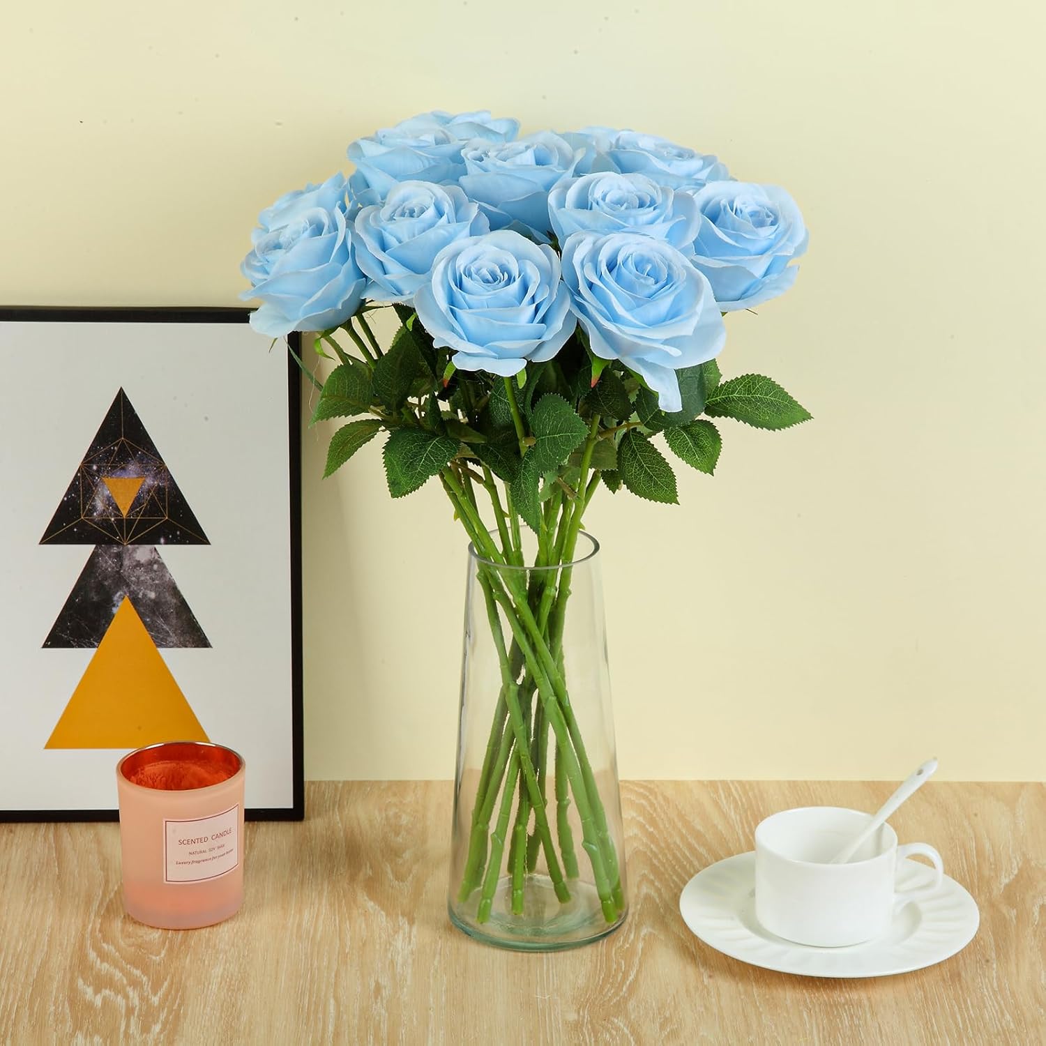12pcs Roses Artificial Flowers Fake Roses Blue Silk Roses Flowers Rose with Long Stems for Wedding Home Party Centerpieces Decorations