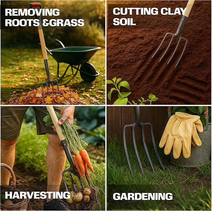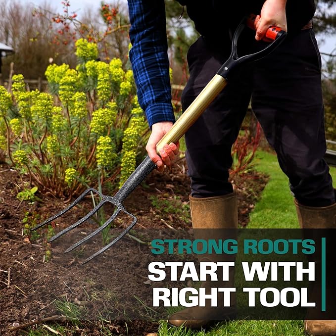 - LOW MAINTENANCE: Built to last with a rust-resistant finish, this gardening fork requires little upkeep—offering a hassle-free, long-term digging tool for everyday garden tasks.