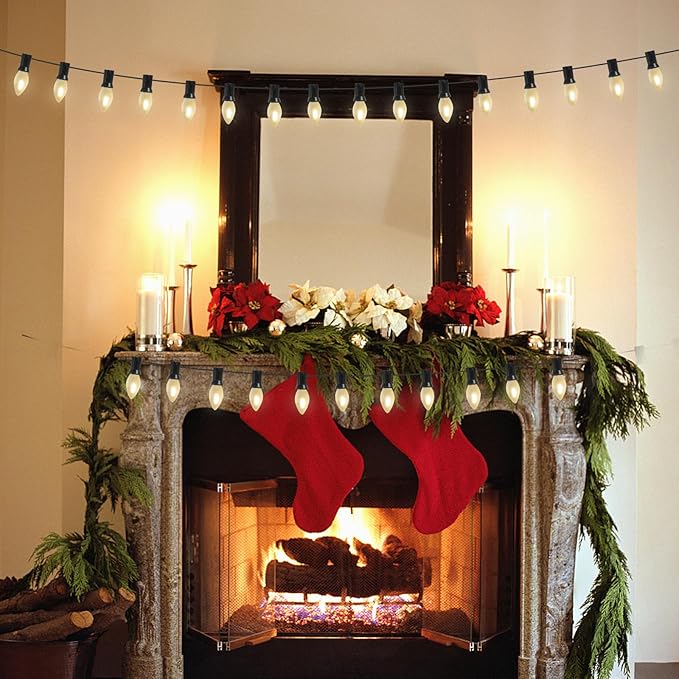 - Creative Christmas decorations - The combination of green silk thread with white ceramic incandescent bulbs perfectly sets off a retro romantic atmosphere that is more vibrant in winter. Perfect for decorating your Christmas, holiday, winter, store, Christmas tree, roof, eaves, backyard, garden, patio, walls, gates, yard, Windows, parties and every occasion before Christmas.
