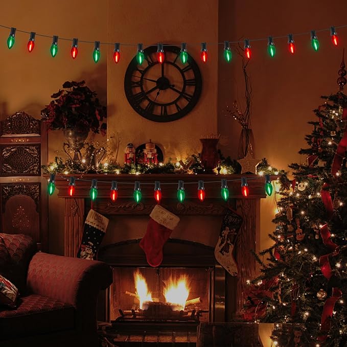 - Old-fashioned Christmas lights: Clear red/green incandescent lights and green lines look more restored to natural and original colors. So its light is soft, which obviously makes our holiday environment comfortable and pleasant. Perfect for decorating your home, Christmas, holidays, winter, shops, backyards, gardens, courtyards, walls, gates, yards, Christmas trees, Windows, parties and every occasion before Christmas.