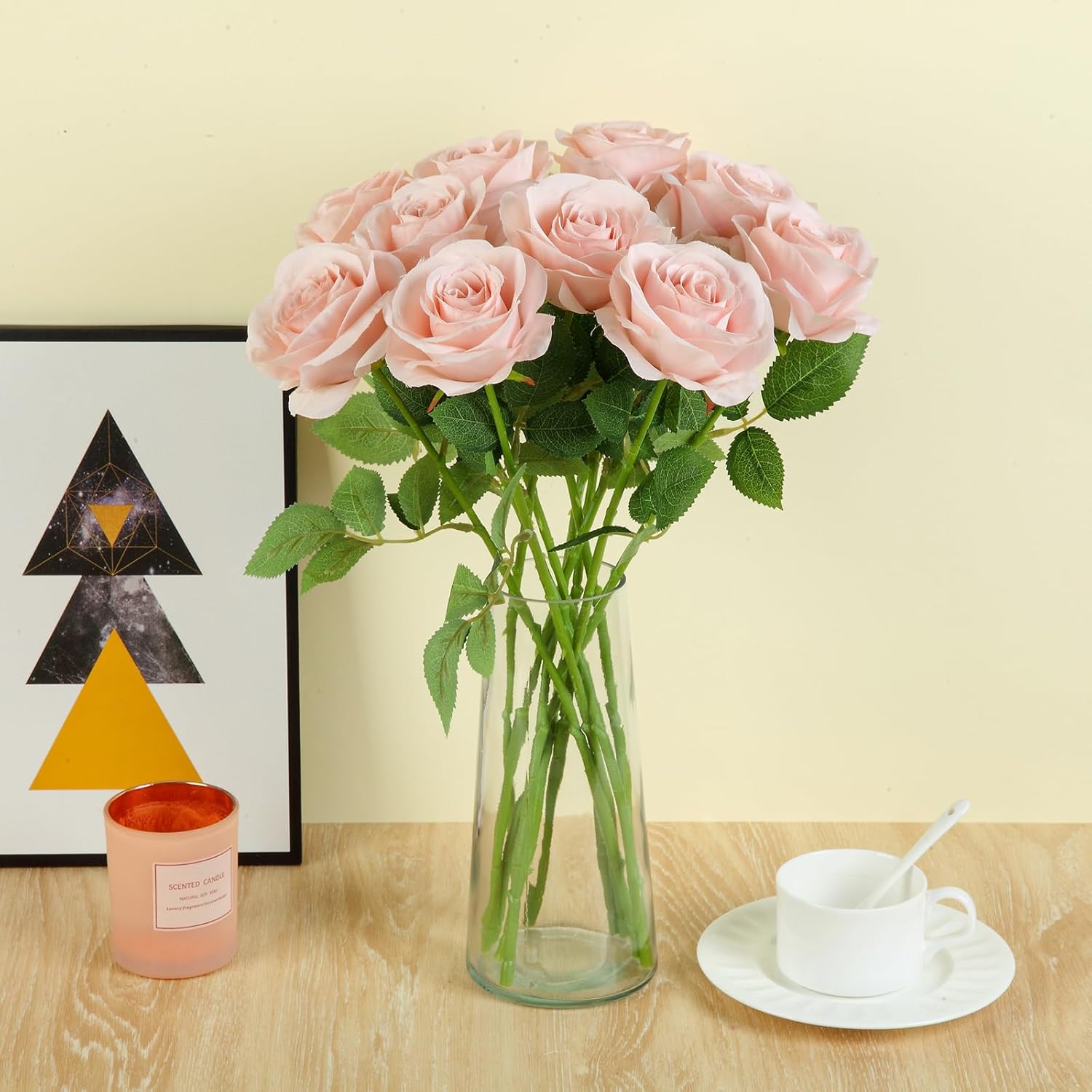 12pcs Blush Roses Artificial Flowers Fake Roses Silk Flowers Roses with Long Stems for Wedding Home Party Centerpieces Decorations