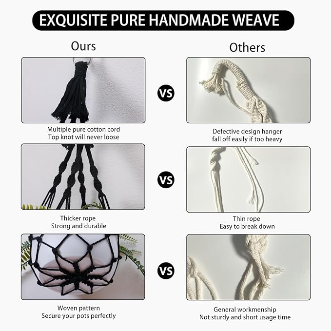 - HANDMADE WEAVING CRAFT - Hanging plant holder made from eco-friendly cotton rope and metal ring, It has a strong flexible woven design, sturdy and durable, enough to hold the weight of the pots, not easy to break, you can take them home for your plants with confidence