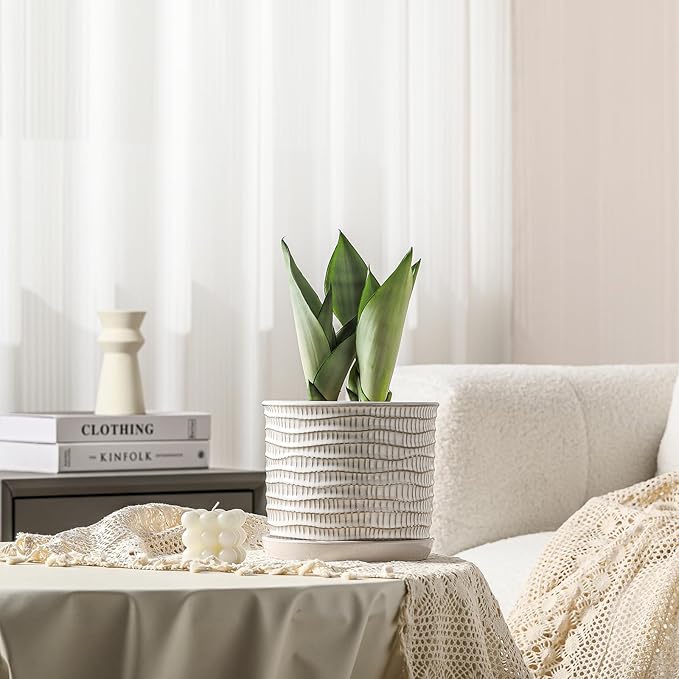 - Unique Wave Embossed: This planter is creamy white with Wave relief on the surface. Suitable for modern, farmhouse or mid-century home styles