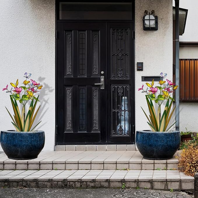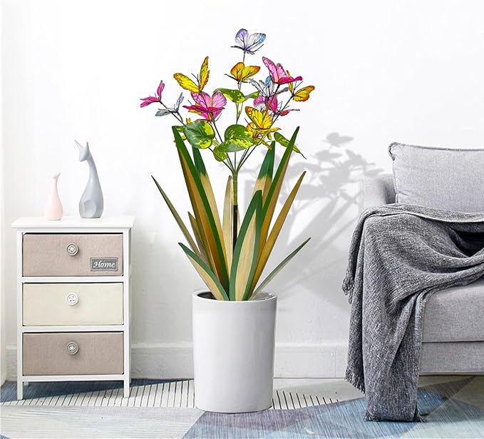 - [Cute design garden peg decoration] : Wings can be opened or closed for various displays. The thin metal stakes are easy to hide, creating the illusion of a real butterfly. Their vibrant colors and lifelike appearance will transform your garden into a beautiful and charming oasis.