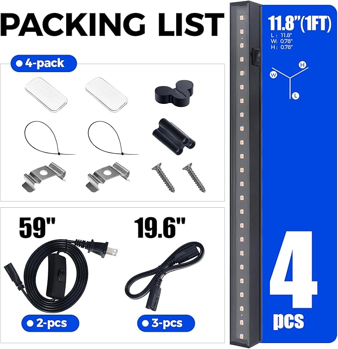 - Unique Exterior Design: This 1ft grow light strip made in a black casing with aluminum instead of white casing. Make it look even better and more integrated into your fine home furnishings. Dark cords instead of white so as to minimize the observance of cords running through your plant displays