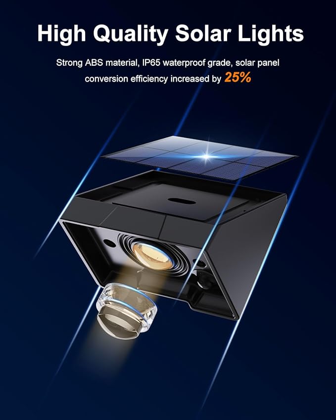 - Superior Durability, Extended Lifespan: Crafted from premium LED and robust ABS materials, solar wall lights boast an IP65 waterproof rating, ensuring functionality even in adverse weather conditions for long-lasting durability. Equipped with rechargeable batteries and high-efficiency solar panels, they provide reliable outdoor illumination, shining bright for 6-10 hours on just 4-6 hours of charge.