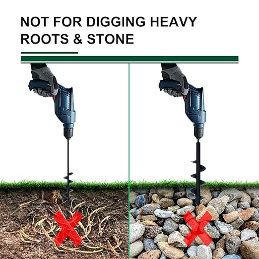 - 【Easier to Use - For 3/8'' Hex Drill Driver】- Enjoy the easy installation! Just insert the auger drill bit into the hex drill driver, tighten it, and rotate it to remove the soil. Repeat drilling until the desired planting depth is achieved. 18V or greater drill recommended. When idle, keep the auger clean and free of soil & debris to prevent oxidation.