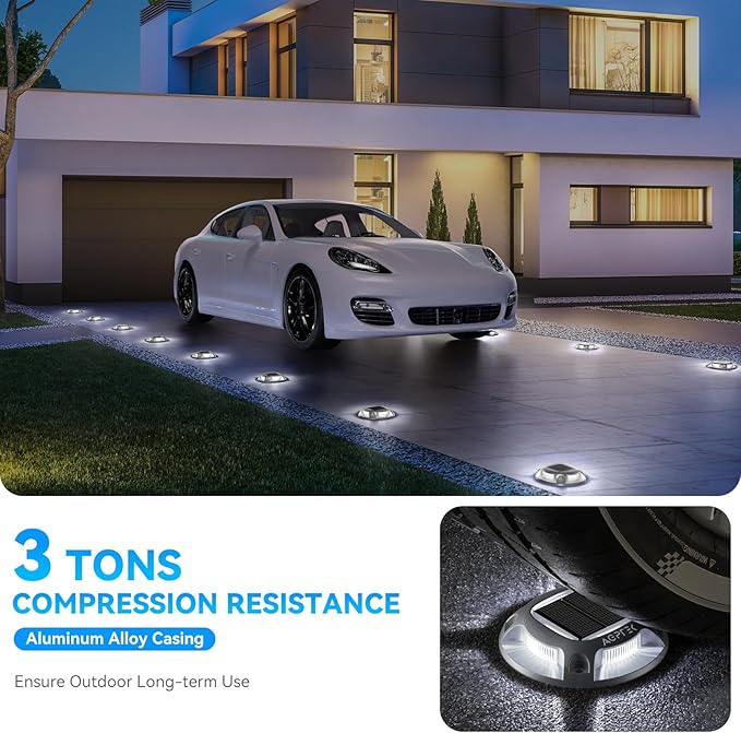 - 【Heavy Duty Solar Lights】Made of Premium Aluminum Material, able to withstand 3 tons of pressure from vehicle, trucks and boats. No need to worry about these marine dock lights being damaged due to crush or hits while located on driveway or outside boat dock.