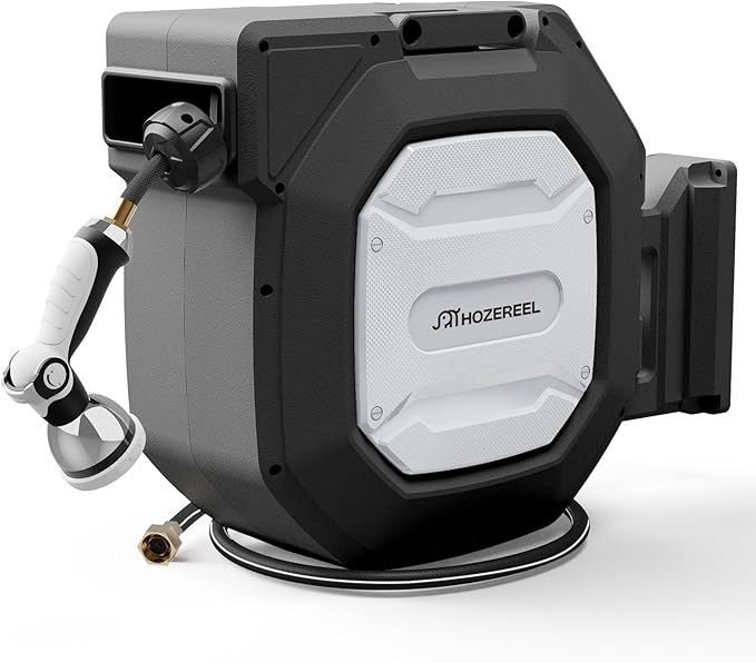 - 【Heavy Duty for Long Term Using】: The HOZEREEL hose reel is well built and no leaks in normal everyday use. The hybrid hose is strengthen construction and the connect fittings are made of brass.