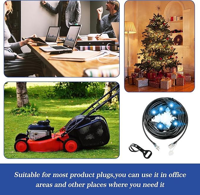 • Perfect multi-purpose extension cord. Our extension cord with multiple outlets is a must for household and working. You can plug in more devices in 1 cable. It is perfect for running home appliances in house, lighting up Christmas trees indoor and outdoor, holiday and party decorations. To use as stage backlines power board and power strip