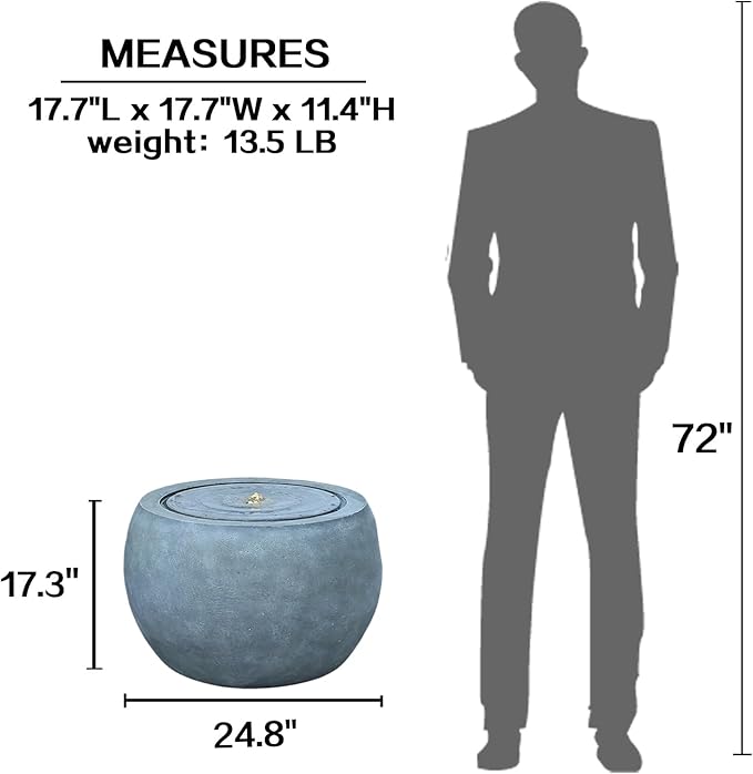 - GARDEN RESIN FOUNTAINS - Elevate your space with the unique Spherical bubbler fountain outdoor. Crafted with a faux concrete cement finish, this outdoor waterfall fountain adds an artistic touch to your surroundings.