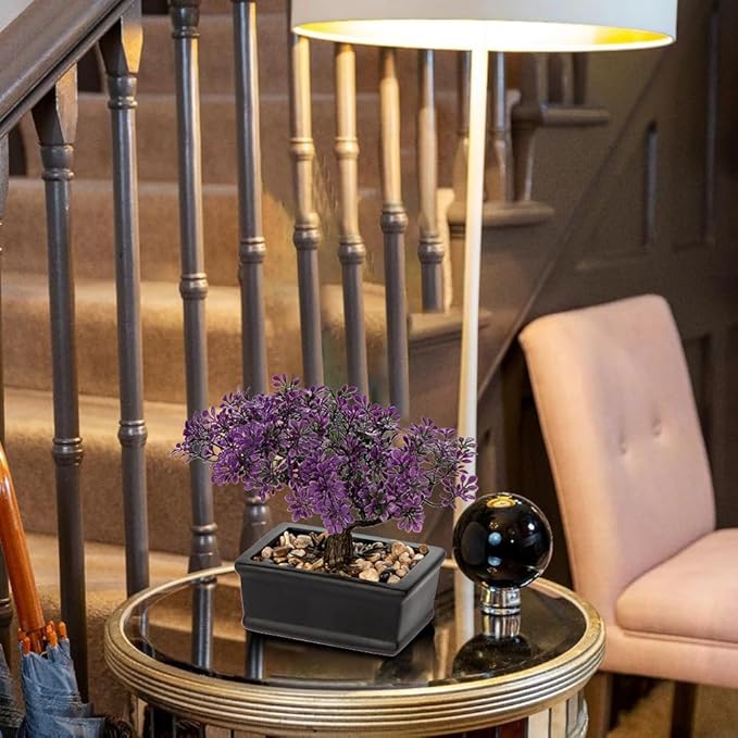 Artificial Bonsai Tree Juniper Faux Plants Indoor Fake Plants Decor with Black Ceramic Pots for Home Table Office Desk Bathroom Shelf Bedroom Living Room Farmhouse Decorations-Purple
