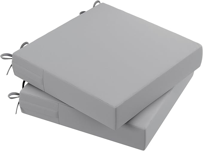 AAAAAcessories Outdoor Seat Cushions for Chairs, Waterproof, Fade-Resistant Patio Furniture Replacement Cushions, 21" x 21" x 4", Set of 2, Gray