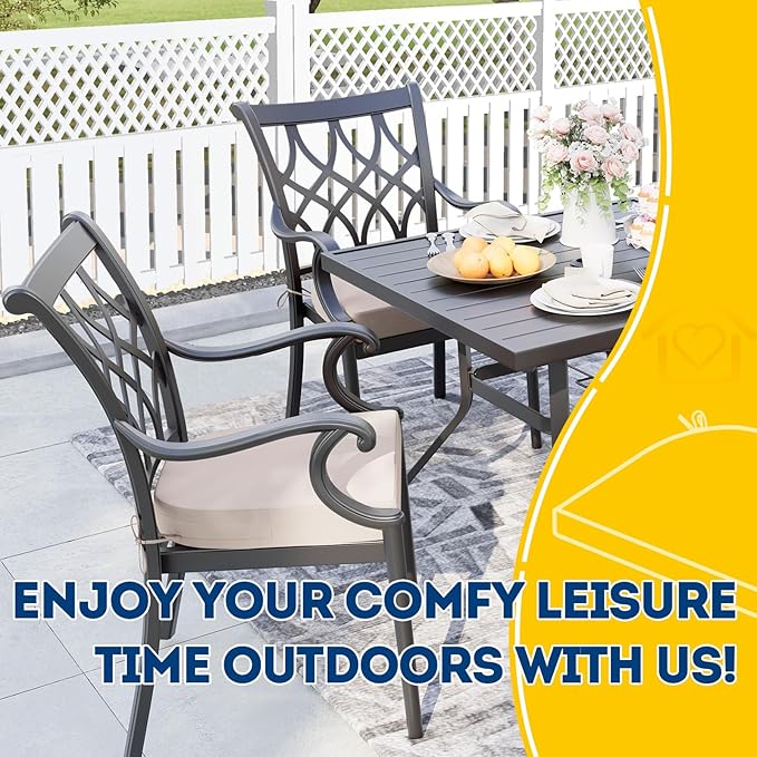 - Wide Use & Tips: These outdoor dining chair cushions fit pools, patios, balconies, decks, backyards, and gazebos. Foam inserts and covers are packed separately in bags and placed in one box—check all parts. Easy assembly required