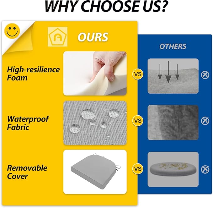 - Wide Use & Tips: These outdoor dining chair cushions fit pools, patios, balconies, decks, backyards, and gazebos. Foam inserts and covers are packed separately in bags and placed in one box—check all parts. Easy assembly required