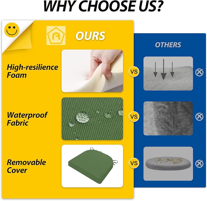 - Wide Use & Tips: These outdoor dining chair cushions fit pools, patios, balconies, decks, backyards, and gazebos. Foam inserts and covers are packed separately in bags and placed in one box—check all parts. Easy assembly required