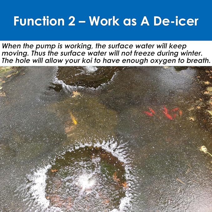 - DUAL-FUNCTIONAL - This pond air pump can not only work as a pond aerator, but also as a pond deicer in winter to leave a ventilation hole for your koi to breath!