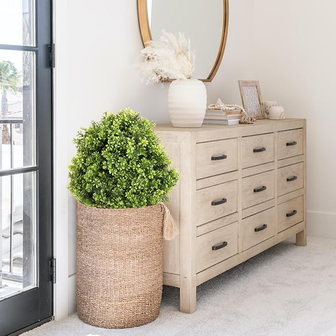 - Low Maintenance & Long-Lasting – No watering, pruning, or fertilizing needed—these maintenance-free artificial topiary plants retain their shape and color all year. Just an occasional dusting or light cleaning keeps them looking fresh and inviting without the mess of real plants
