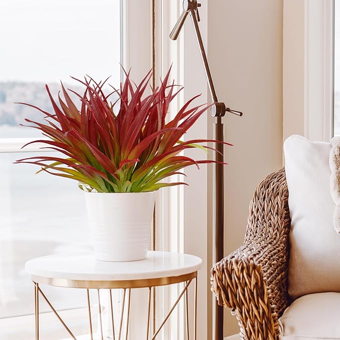 16Pcs Artificial Grass Fake Plants 17.3in Outdoor Plants UV Resistant Greenery Stems Fake Grass for Home Window Garden Office Patio Pathway Front Porch Décor Light Green & Red