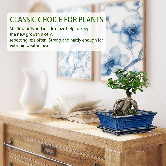 - SHALLOW BONSAI POT - Remains absolutely functional for bonsai use in form and design. Specificity of shallow is needed for a highly-developed bonsai in refinement, slow and delicate growth from a restrictive pot both helps repot less often to get the right look and keeps your tree healthy while doing so, replicating a natural scene much better