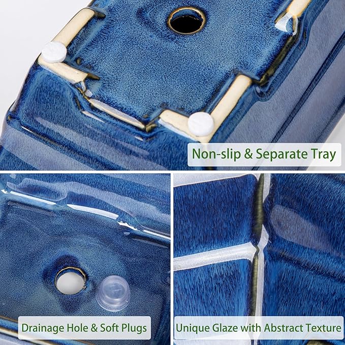 - WILDELY APPLICATION - Love the uniqueness of subtle blue glazes and somewhat mottled color form from iron within the clay body flows into and bonds with them, providing a pallet for smoother, cooler and more classic hues for multi-style decor. Excellent choice for living room, tabletop, windowsill, garden, patio, office or commercial place. Also this shallow bowl planter for indoor/outdoor plants makes a thoughtful and lasting gift to a plant lover