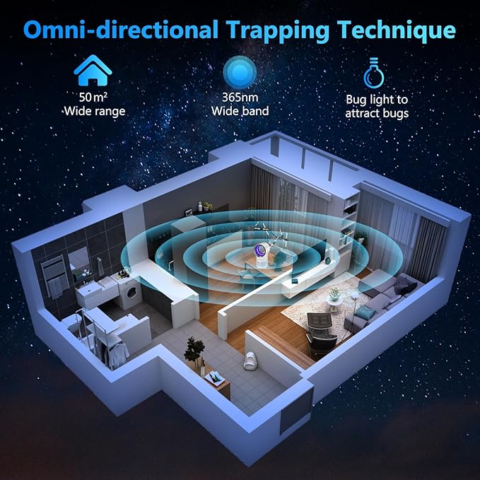 - Widely Use and Low Noise: Fruit fly traps for indoors adopts physical mosquito control, safe and low noise. Mosquito trap are commonly used in homes, kitchen, living room,restaurants, and other areas where flies can be a nuisance or a health hazard.