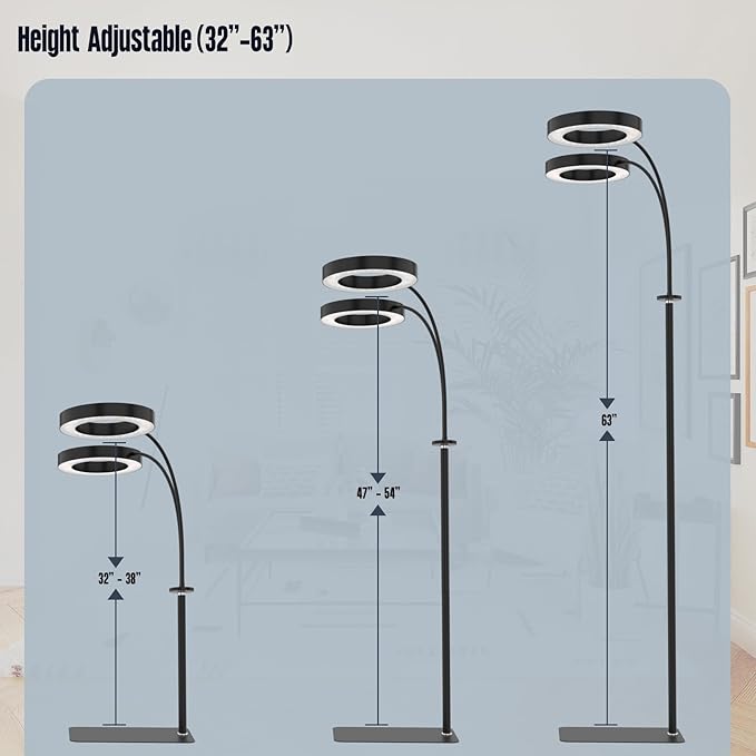 - 【Height Adjustable】Compared to traditional grow lights, our latest grow lamp features a detachable three-section design that is easy to install and can be adjusted to heights of 32/47/63 inches. The lamp head able to rotate 360 degrees. The flexibility ensures that your plants receive more even and effective light, allowing them to grow better.