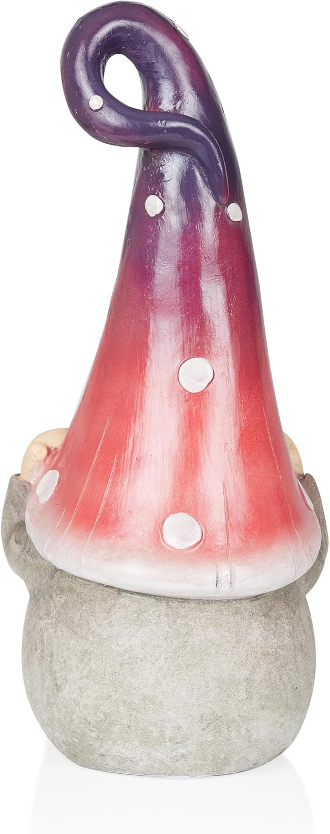 - PLAYFUL DESIGN: The gnome’s unique purple ombre hat adds a trendy, eye-catching element to its design. Its vibrant color enhances the overall aesthetic of your garden or patio while bringing a playful touch to your outdoor décor.