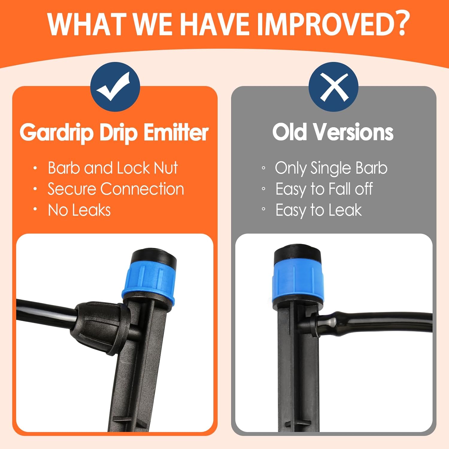 - UV-STABILIZED MATERIAL FOR LONG LIFE: Made of high quality & UV resistant plastic material,Gardrip drip irrigation emitters assure long life in the landscape. And the dripper cap are detachable and very easy to clean. Don't worry about clogging