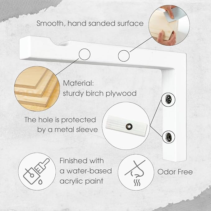 2-Piece Set of Plant Hooks for Wall 6 Inch - L-Shaped Mounted Wooden Plant Hook - Indoor and Outdoor Bracket Plant Hanger for Planters, Lanterns, Bird Feeders and Plant Basket (White)