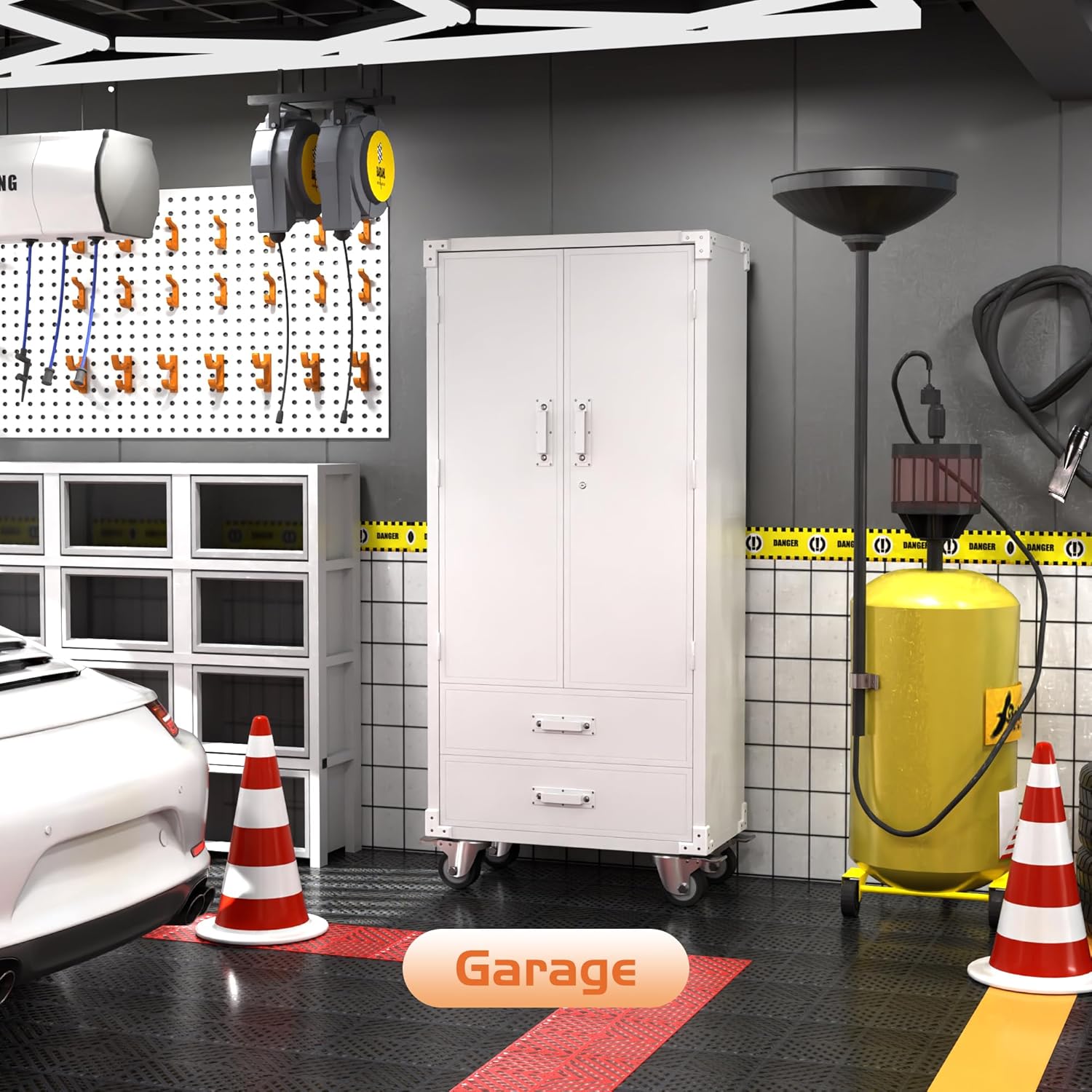 - 【Secure Privacy Lockable System】 Cabinet features 2 hinged doors and 2 large drawer and a built in key lock with 2 keys to help keep files and important documents as well as your personal belongings safe.It can be used in your home, office, garage, workshop, school, and more.
