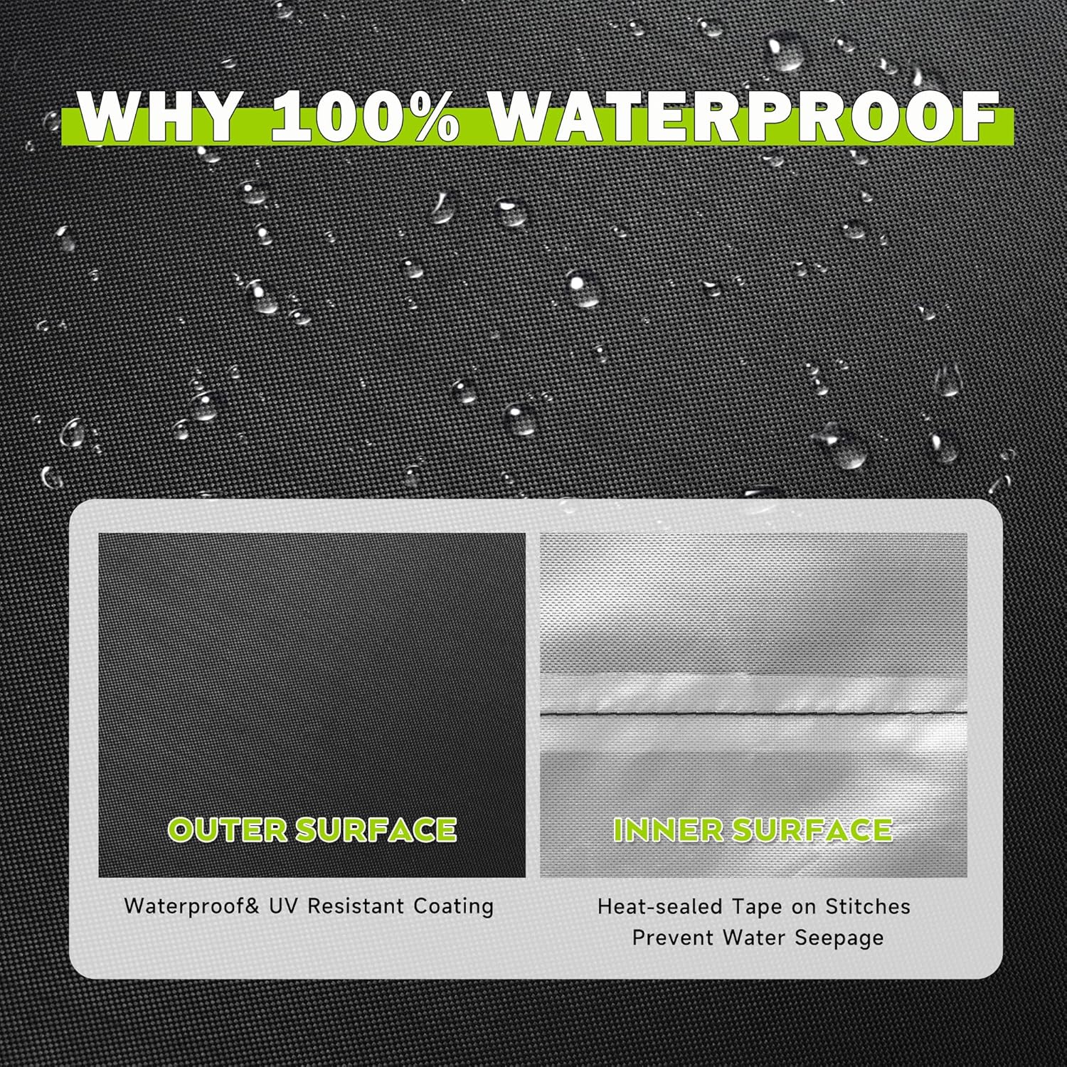 - WATERPROOF & ANTI-UV – Waterproof outer coating and heat-sealed tape on stitches prevent water seepage. Inner PU coating layer protects your outdoor griddle from damage caused by prolonged sun exposure