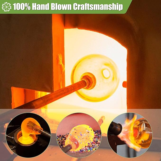 - Hand Blown: Handmade glass feeder is thick, durable, and unique. Bright blue color attract more hummingbirds to your garden. Equipped with quality ant moat hook for hanging, premium metal cap and plastic base with leak-proof edge, no worries about messy spills