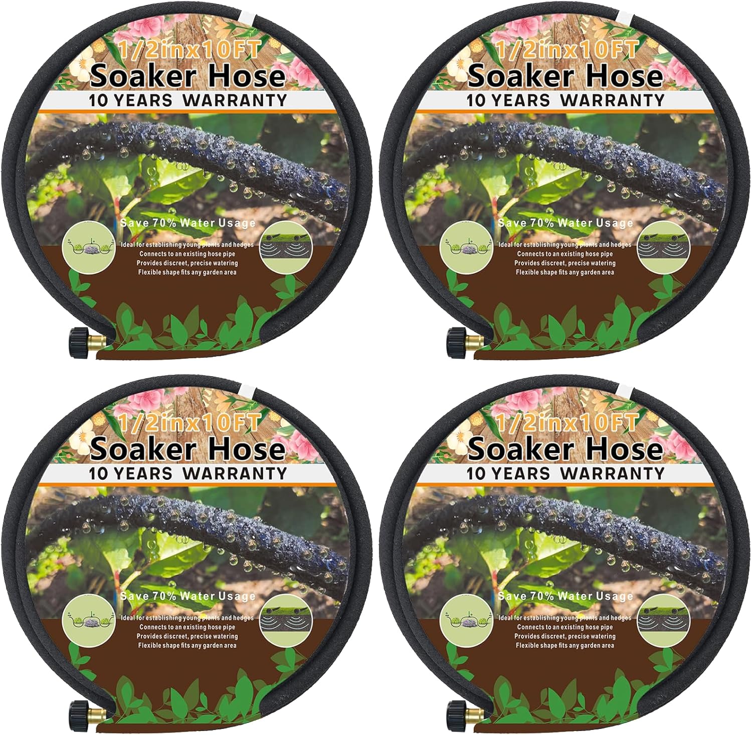 4-Pack Soaker Hose for Garden 10 Ft, Short Soaker Hoses 40 Ft, Rubber Garden Hose for Watering, Heavy Duty Drip Irrigation Hoses System (10 feet 4-Pack)