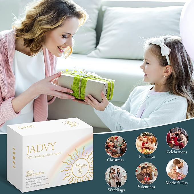 - Nice Choice:JADVY's DIY crystal suncatcher kit makes a great for anyone who loves handmade and beautiful unique decorations. At the same time, it is also a good choice for DIY for mothers, elders, or children. With this kit, they'll have everything they need to create a beautiful, glittering suncatcher that will brighten up any room. Overall, JADVY's DIY suncatcher kit is a thoughtful and memorable that is sure to bring joy and creativity to anyone who receives it