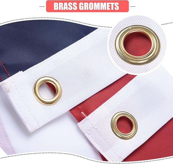 - Strong, Durable: The USA flags 20x30 outdoor, four point needle fly hem (4 rows of stitching), brass grommets. Fly your big united states flags proudly in the rain, snow, high winds, and sunshine! The perfect all-weather, outdoor American Flag banners.