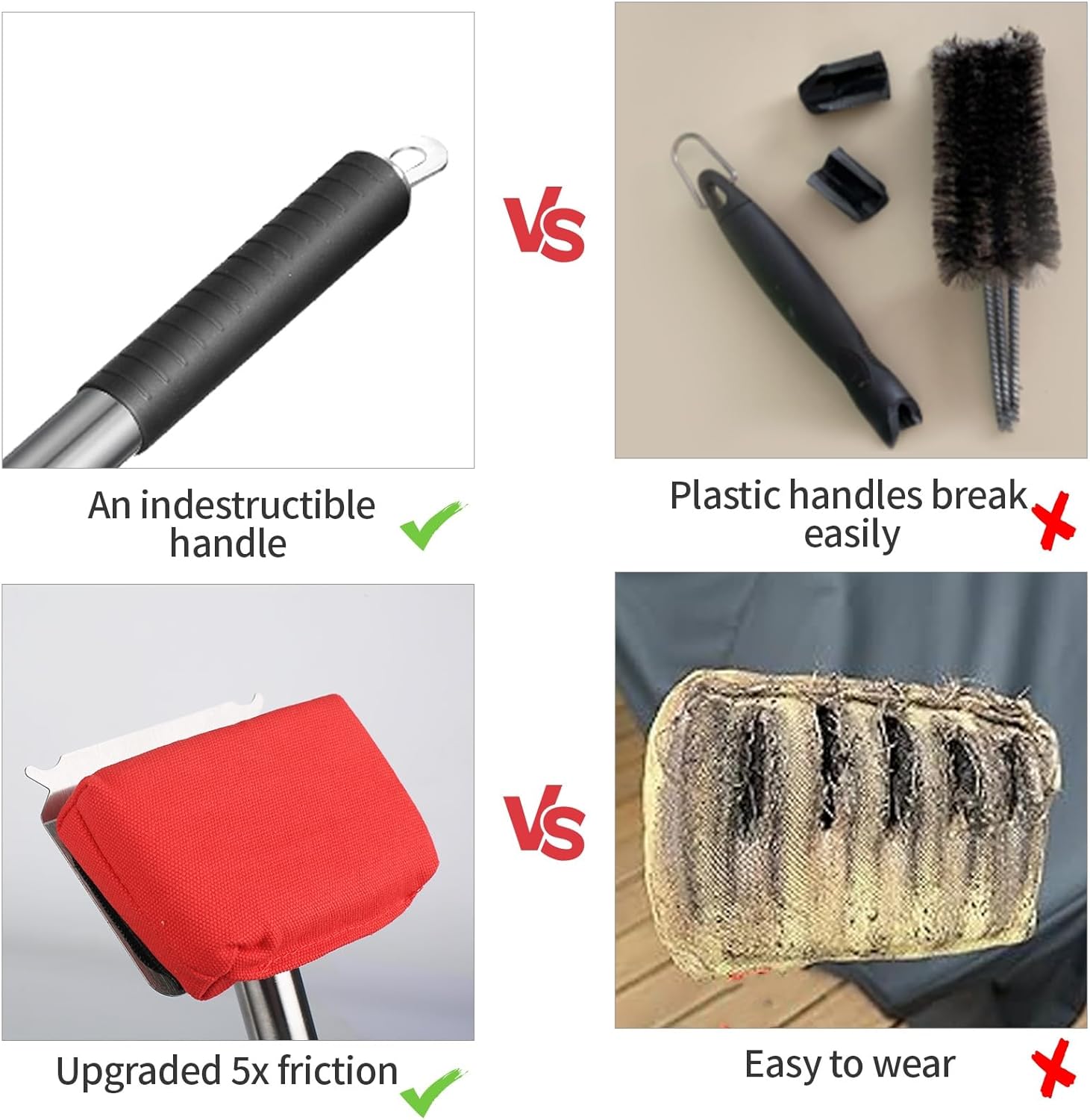 - 【long stainless steel handle】Not only have we’ve tested this safe bbq brush on numerous gas, charcoal, pellet, and flat-top grills; The long stainless steel handle never bends or breaks, keeping you away from heat sources. It truly is the world's safest grill brush.