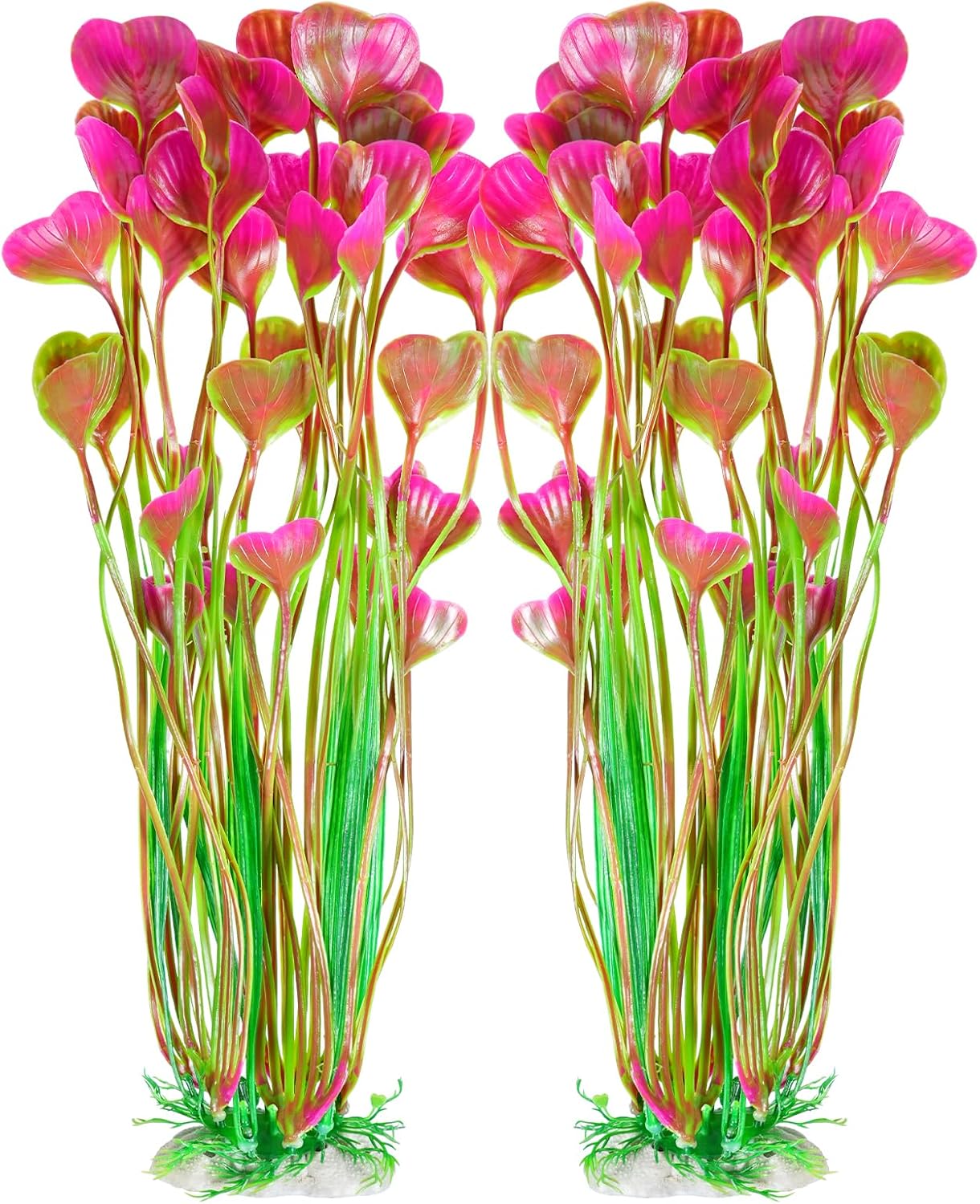 AQUANEAT Artificial Fish Tank Plants, Plastic Aquarium Accessories Large, 15.5 inch Red Decorations, 2pcs