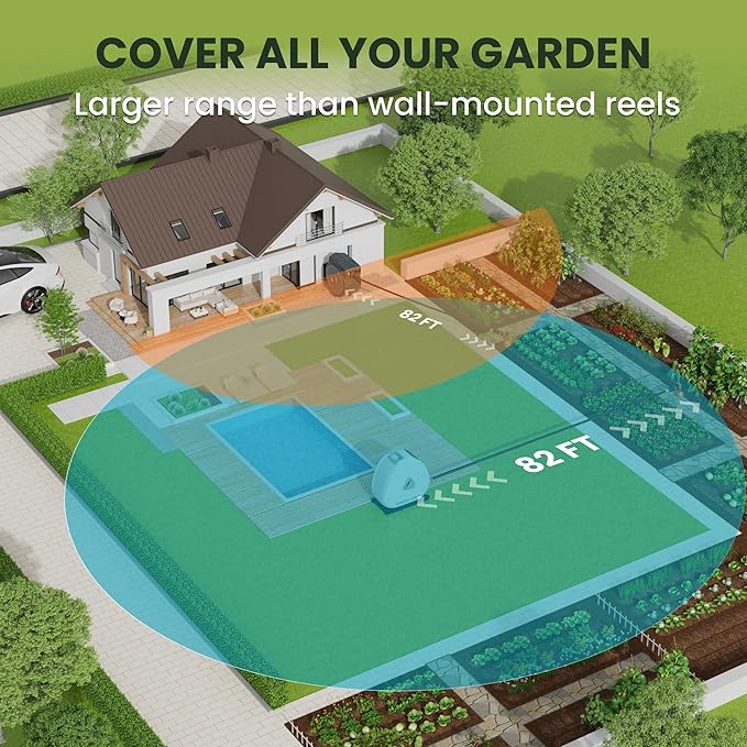 - NO MESS, NO STRESS- Stop wrestling with tangled hoses! This reel auto-retracts with a gentle tug, store the hose neatly, saving time and backyard space. User-friendly details with the hide-in handle and detachable front cover make it enjoyable for all ages.