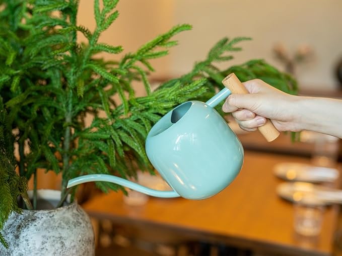 - 【IDEAL CAPACITY】Our Mint Green small metal watering can is a great indoor watering can with a capacity of 1200 ml/41 oz. You can water all your indoor plants at once which allows you to water multiple small bonsai without frequent refilling.